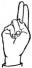 На ћирилици написано ПЕРО СЕЛЕНИЋ састоји се из 11 слова [?]. Исписано ћириличном једноручном азбуком за глувонеме: